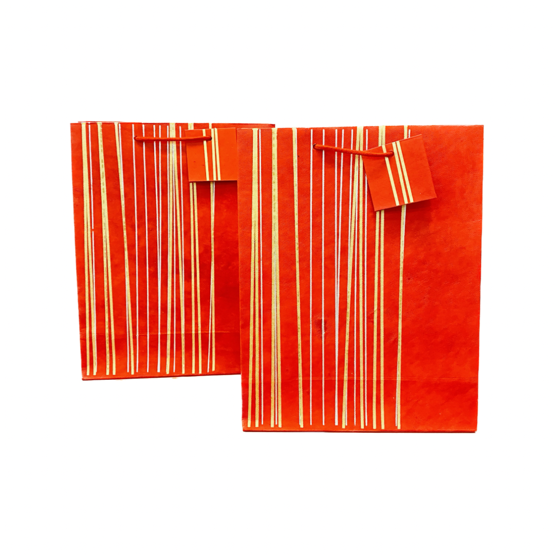 Pack of 2. Gift bag made with handmade paper with screen print. Gold and silver screen print. Size and colour options available.
